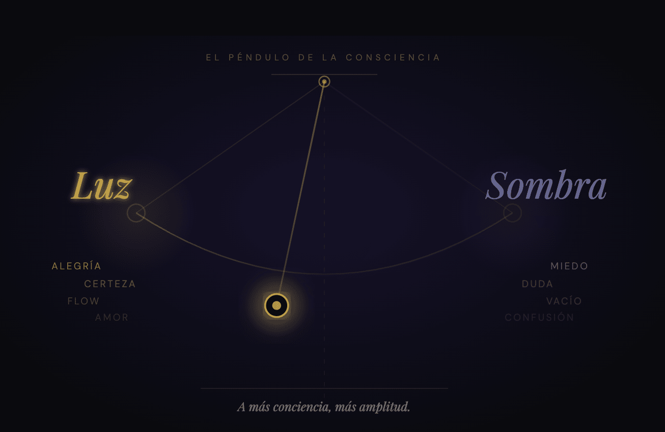 El Péndulo de la Consciencia ↓ ¿Qué dirías si te dijera que para vivir tu mejor vida debes estar dispuesto a sentir el dolor y tristeza más grande de tu vida? Estamos hablando de tu mejor vida: expansión, prosperidad, alegría, amor, todo lo bueno al máximo — y también lo incómodo. Todo lo que has soñado y más, por el módico precio de sentir y ver todo lo que has evitado. Este no es un caso hipotético. Es el diseño de la vida, algo que llamo el péndulo de la consciencia. Un péndulo tiene un...